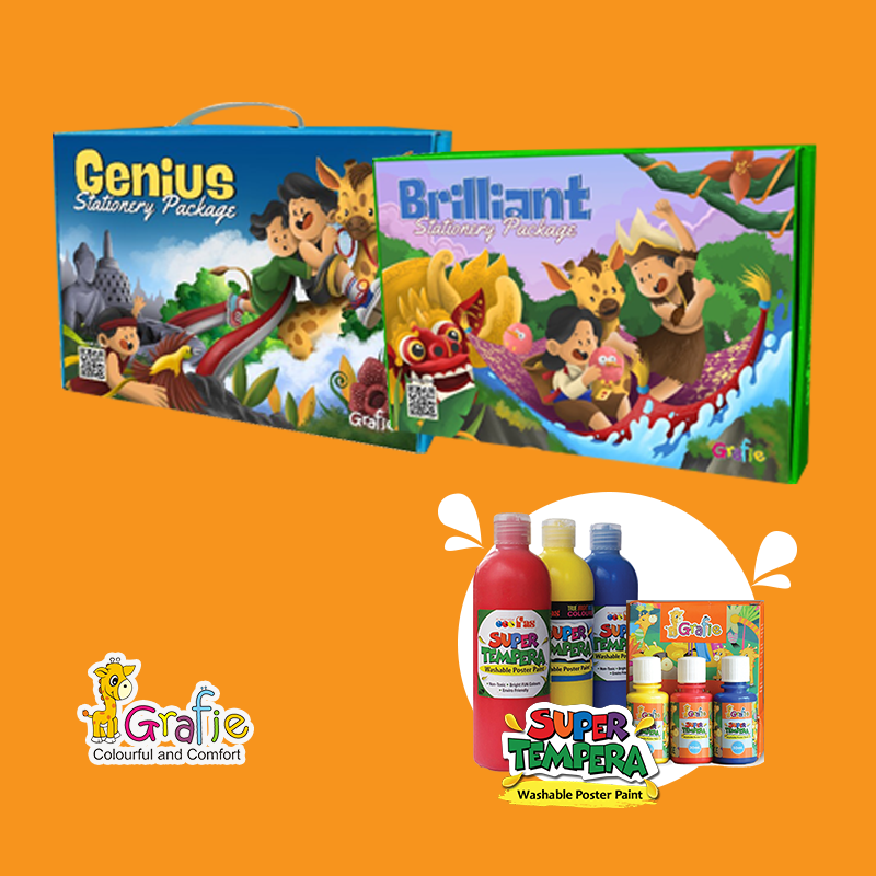 Grafie adalah merek produk alat tulis lokal berkualitas dengan standar Jerman. Semua produk aman dari segi bahan (non toxic safe for children) maupun desainnya. Pewarna yang digunakan adalah pewarna makanan (food grade) dan warna yang di pilih menarik bagi anak-anak.